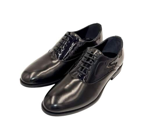 SCARPA ELEGANTE IN SPAZZOLATO-RIPORTI IN VERNICEDETTAGLI PRODOTTO