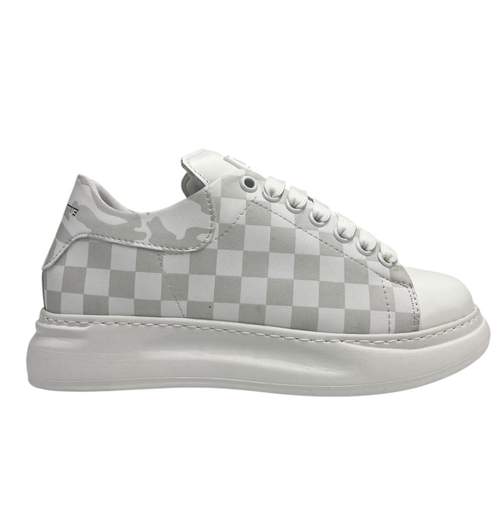 SNEAKERS IN PELLE GOMMATA CON RIPORTI IN VERNICE - FONDO ULTRALEGGERO ALTEZZA 4 CM -DETTAGLI PRODOTTO