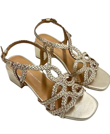Sandali in pelle laminata con intreccio e tacco. Hanno la suola imbottita. Chiusura regolabile sul tallone. Altezza tacco: 6 cm. Composizione: -Pelle.DETTAGLI PRODOTTO