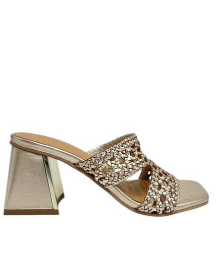 Sandali mule con tacco, in pelle intrecciata e dettagli metallici. Hanno una soletta interna in pelle imbottita. Altezza tacco: 7 cm. Composizione: -PelleDETTAGLI PRODOTTO