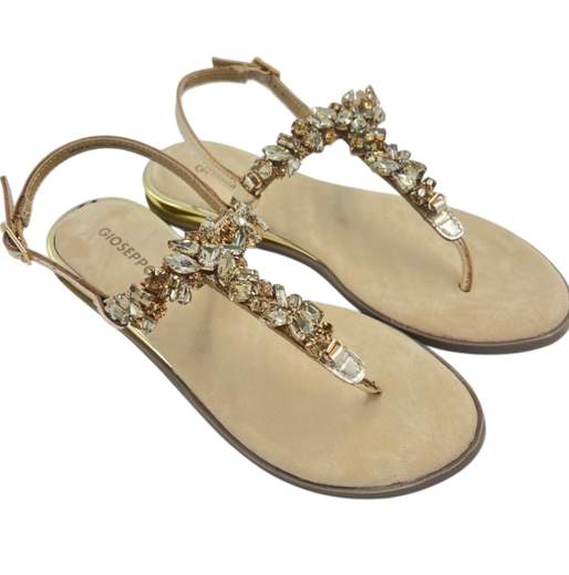 Sandali in pelle metallizzata con strass e leggera zeppa. Hanno una suola morbida e imbottita in pelle scamosciata. Chiusura regolabile sul tallone. Altezza zeppa: 2 cm. Composizione: -Pelle. -Suola flessibile in TPR.DETTAGLI PRODOTTO
