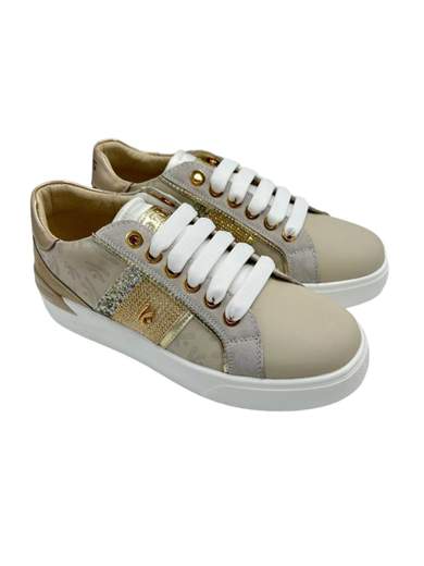 SNEAKERS IN PELLE E TESSUTO CON BORCHIETTE GLITTER