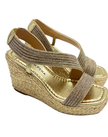 SANDALO IN PELLE LAMINATA CON SWAROVSKI -SOTTOPIEDE MORBIDO- ALTEZZA ZEPPA 10 CM CON PLATEAU DI 3.5 CM -DETTAGLI PRODOTTO
