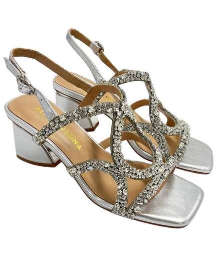 SANDALO IN PELLE LAMINATA CON SWAROVSKI -SOTTOPIEDE MORBIDO- ALTEZZA ZEPPA 6,5 CMDETTAGLI PRODOTTO