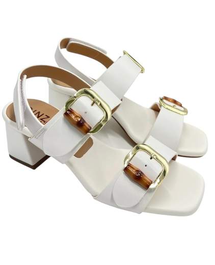SANDALO IN PELLE CON DUE FIBBIE REGOLABILI CON APPLICAZIONISOTTOPIEDE ANATOMICO IN PELLE E TACCO 6 CM