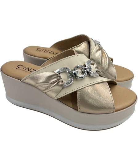 SANDALO IN PELLE LAMINATA CON ACCESSORIO SWAROVSKI - ZEPPA 6 CM -DETTAGLI PRODOTTO