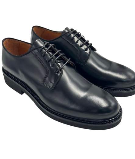 SCARPA IN ABRASIVATO CON FONDO DI GOMMA EXTRALIGHTUn'eleganza senza tempo per un look sofisticato e impeccabile. Questa derby in pelle di vitello abrasivato si distingue per la sua finitura lucida e raffinata, perfetta per occasioni formali e outfit business. Il colore Nero intenso esalta la silhouette classica, mentre la fodera in pelle garantisce una calzata confortevole e traspirante. La suola in EVA Extralight assicura leggerezza e flessibilità, offrendo il massimo comfort per tutta la giornata.