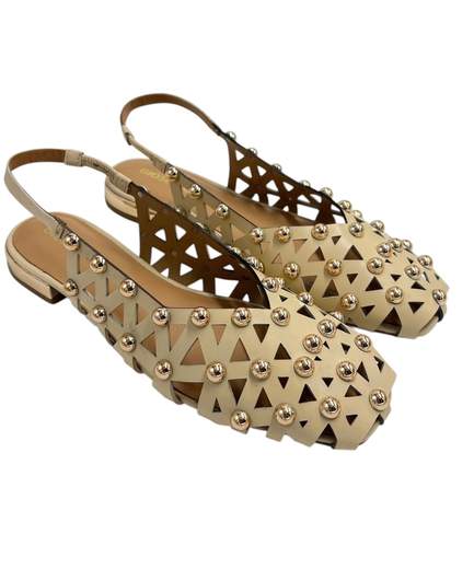 SANDALO BALLERINA IN PELLE TRAFORATA CON BORCHIETTESoletta interna imbottita. Altezza tacco: 1,5 cm