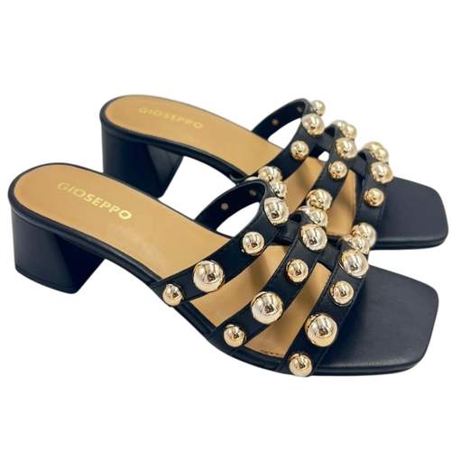 Mules con tacco in pelle e dettagli borchiati. Presentano una soletta interna imbottita. Altezza tacco: 4,5 cm. Tomaia, fodera e soletta interna in pelle. Suola flessibile in TPR.DETTAGLI PRODOTTO