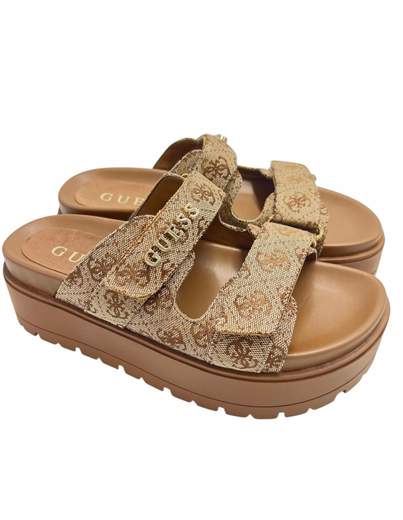SANDALO IN TESSUTO LOGATO GUESS CON DUE FIBBIE A STRAPPO.FONDO PLATFORM ALTO 5 CM