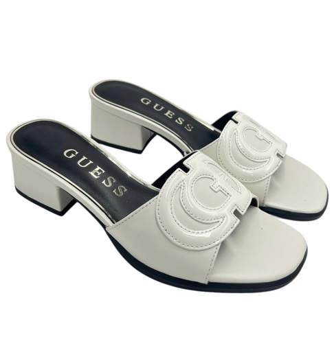 SANDALO IN PELLE CON LOGO GUESSTACCO ALTO 5 CM