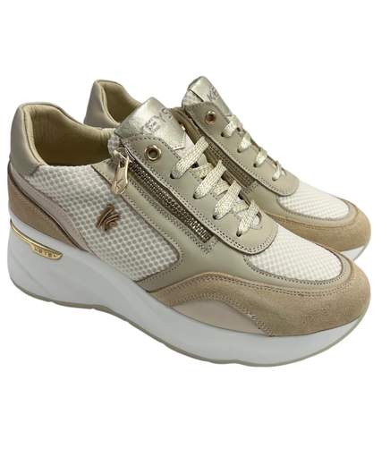 SNEAKERS IN PELLE E CAMOSCIO PIU' TESSUTO TECNICO - ZEPPA ALTA 5 CM - SOTTOPIEDE ESTRRAIBILE-