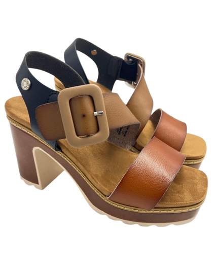 SANDALO IN PELLE CON TACCO 9 CM E PLATEAU 3 CM.SOTTOPIEDE MORBIDO ANATOMICO