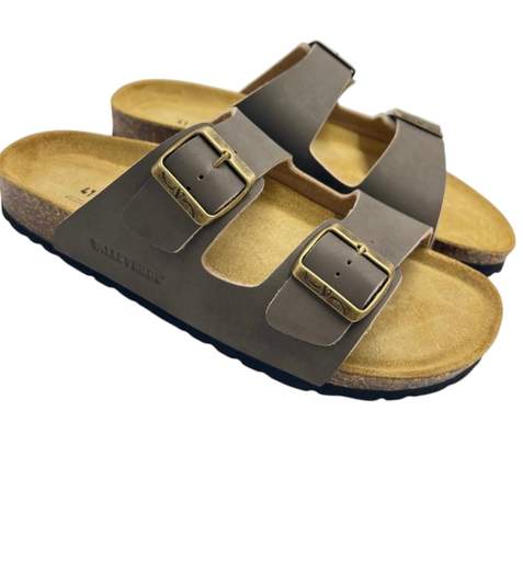 Ciabatta in pelle scamosciata con sottopiede in vera pelle. Suola in gomma alta 2.8 cm.