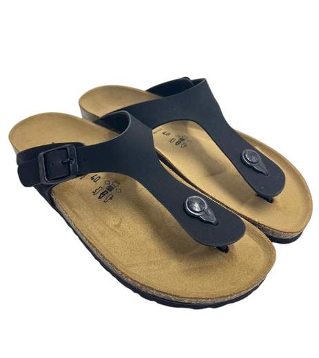 Ciabatta in pelle con sottopiede in pelle. L'articolo ha la suola in gomma alta 3 cm.